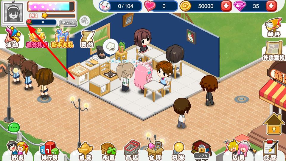 1、打开餐厅萌物语游戏,进入主界面,点击左上角的玩家头像,进入玩家信息界面。