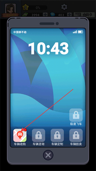 2、在手机页面,找到并点击车辆收购选项,开启车辆收购流程。