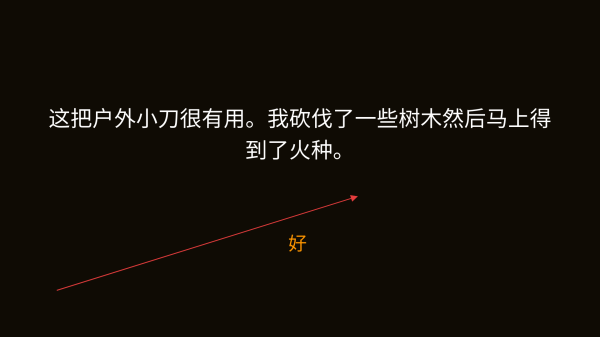 3、依据提示使用小刀砍柴后,阅读了解情况,点击继续进行下一步。