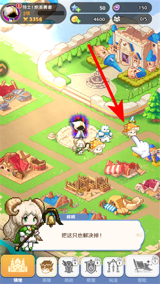 2、在城堡的场景中,我们需要点击目标怪物如图中的蘑菇怪触发挑战流程,这是开启战斗玩法的核心操作,选定怪物后即可进入挑战环节,推进进度的同时积累资源。