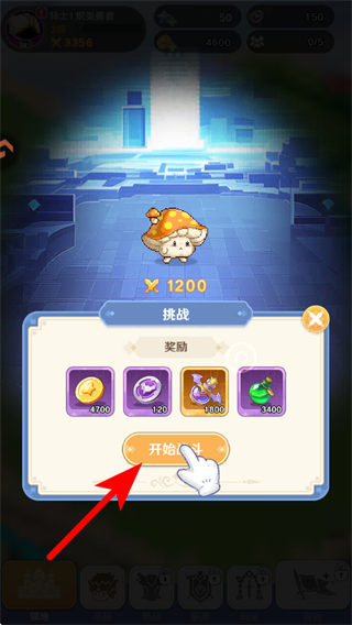 3、在弹出的挑战奖励界面中,点击开始战斗按钮进入战斗环节,这是获取挑战奖励的前提操作,进入战斗后可通过击败怪物获得金币、道具等资源,助力像素城的发展。