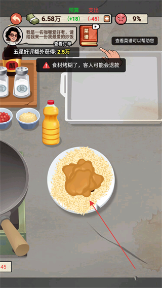 4、将制作好的菜品递给顾客,根据顾客满意度积累资金,提升大排档经营水平。