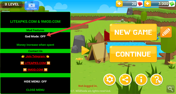 2、在功能菜单中,可查看“God Mode”等模组功能,点击打开上帝模式。