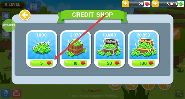 1、在游戏主界面,点击左侧的“LITEAPKS”按钮,打开功能菜单。