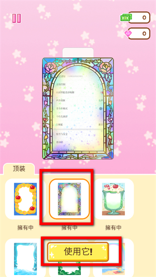 4、在装饰环节,选择喜欢的装饰样式,点击使用它按钮,即可应用装饰,完成游戏操作。
