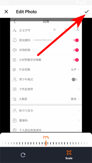 3、在编辑界面,可对内容进行编辑,编辑完成后点击右上角对勾确认。