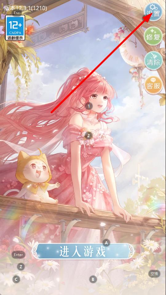 1、打开奇迹暖暖游戏,在进入游戏前的界面中,点击右上方的设置按钮。