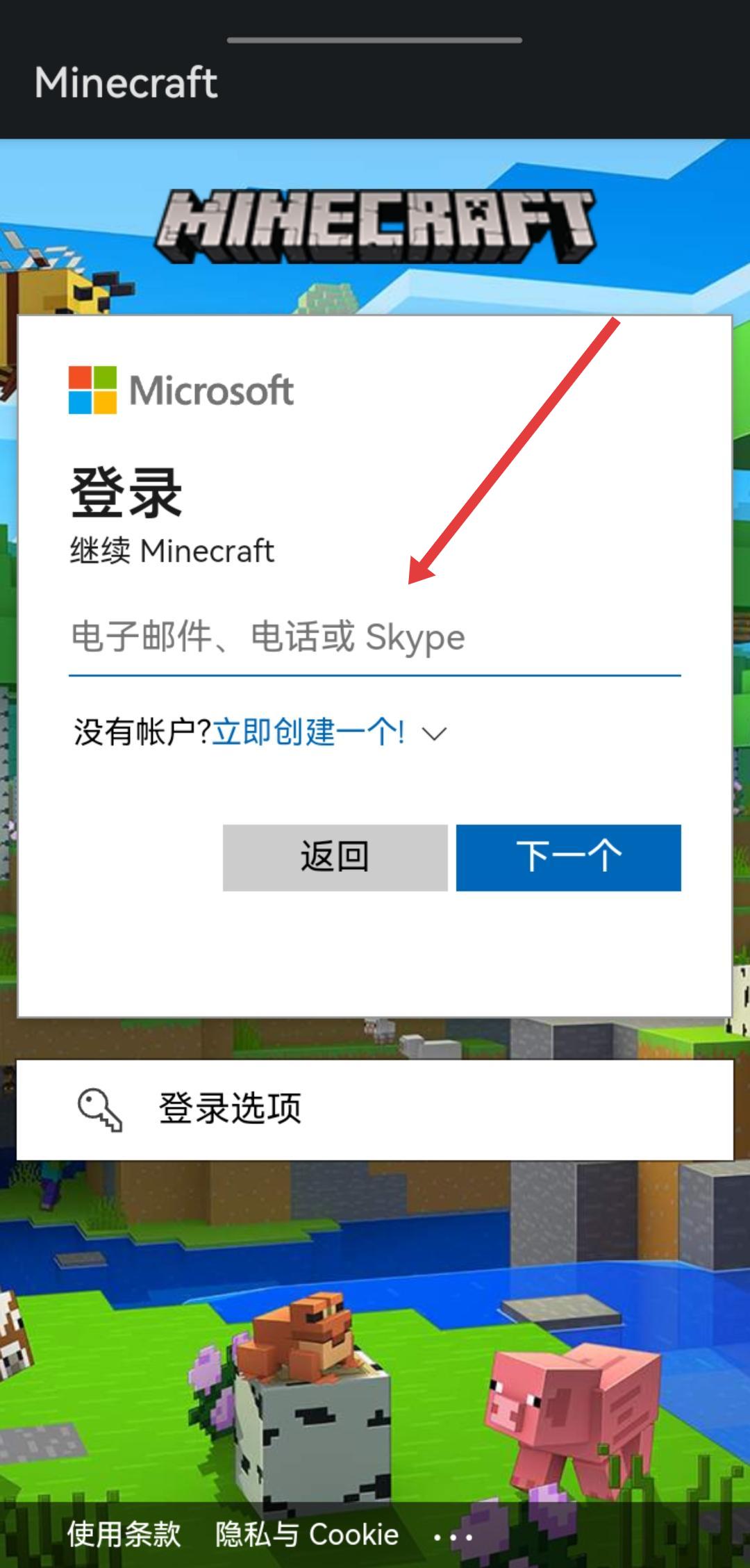 2、在弹出的微软登录界面,输入关联的电子邮件、电话或者Skype账号,继续点击下一个。
