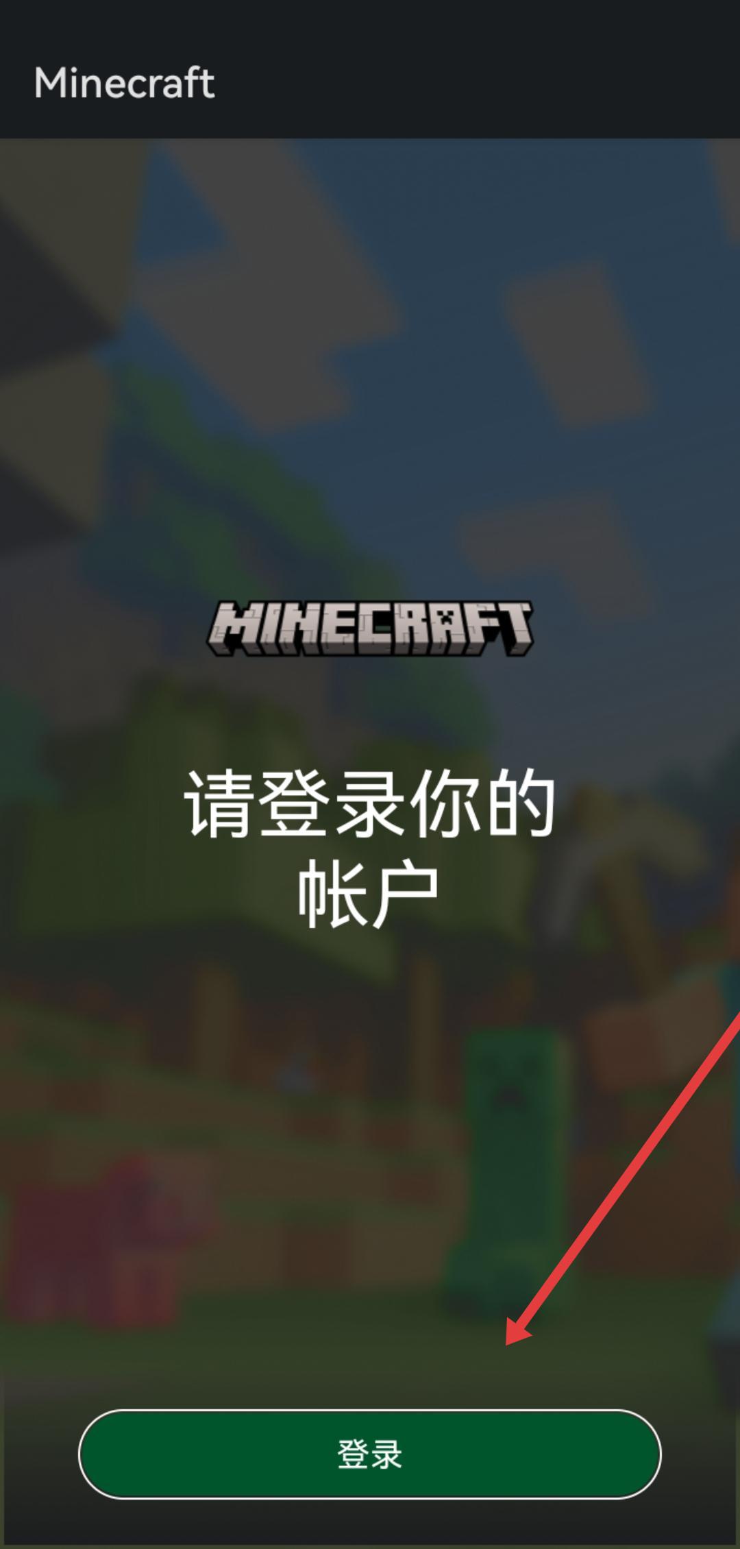 1、下载好游戏后,需要打开我的世界点击界面底部绿色的登录按钮,进入账号登录的流程。