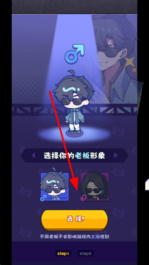 1、玩家进入游戏,创建在老板形象选择界面,挑选心仪的老板形象,确定后点击选择,开启在江南第一主播公司的经营之旅。