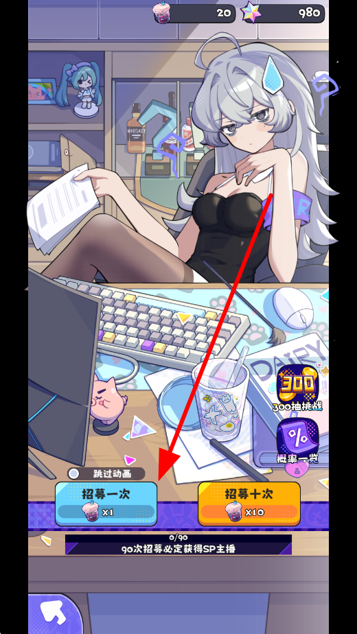 3、然后进入招募环节,可选择招募一次或招募十次,通过招募获取主播,不同的主播有着不同的特点,需根据需求挑选合适的主播。