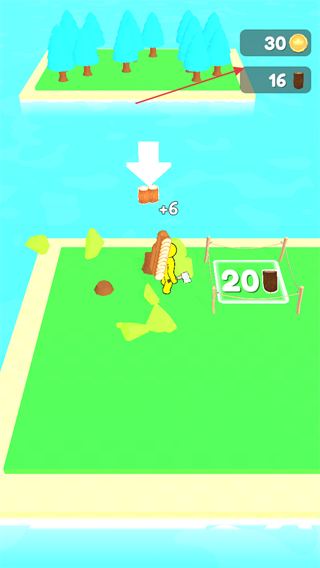 3、将木材运到指定区域,获取金币和木材资源,提升资源储备。
