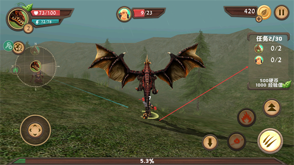 2、操控龙族移动,使用技能攻击目标,推进任务1/30进度。