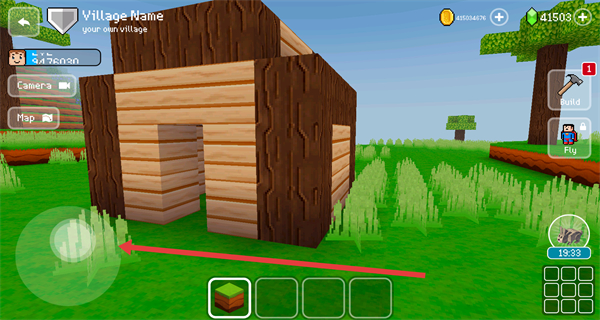 4、建筑建造完成后,可通过左侧虚拟摇杆控制角色移动,探索游戏场景。