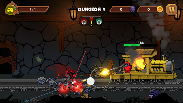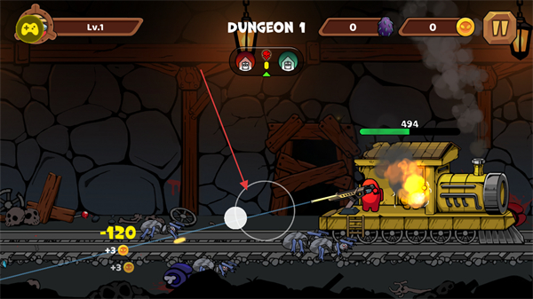 2、持续射击怪物群,快速清理敌人,保护火车前进。