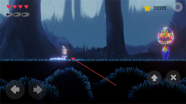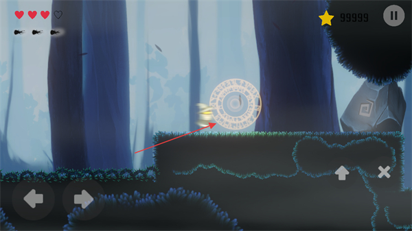 4、让角色触碰发光的圆形机关,触发机关后继续探索新区域。