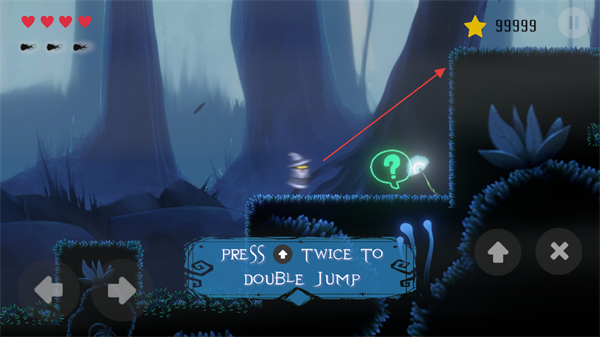 3、按照PRESS↑TWICETODOUBLEJUMP的提示,双击二段跳向上按钮实现,到达高处区域。