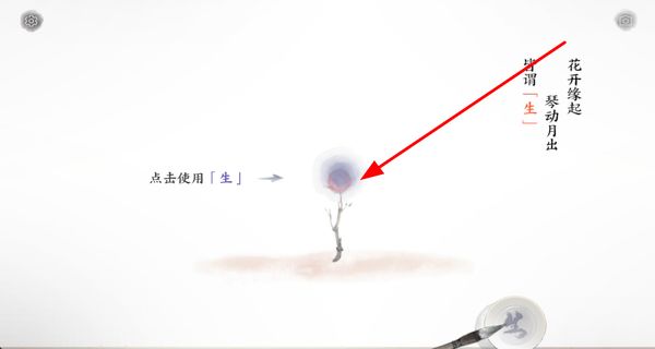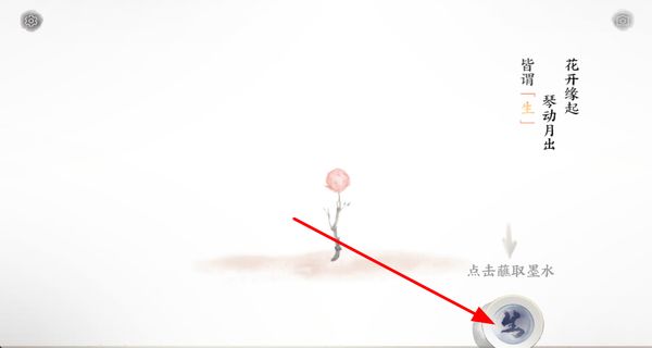 2、点击使用墨水在画面上创作,让花朵等元素变化,推进游戏的画境发展,增强画面的表现力。