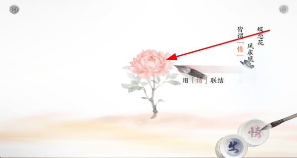 4、用情字墨水联结画面,使用墨水联结花朵等元素,推动剧情发展,解锁新的画境内容。