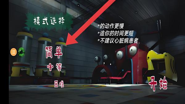 2、在模式选择界面,可根据自身能力挑选简单、中等或困难模式,简单模式下敌人动作更慢、追击时间短,新手建议先选简单。