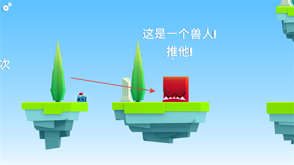 3、持续推动兽人,使其掉落平台,完成关卡目标。