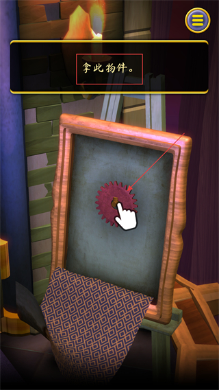 3、在画作后方露出红色齿轮后,根据提示拿此物件,点击该齿轮,获取这个道具。