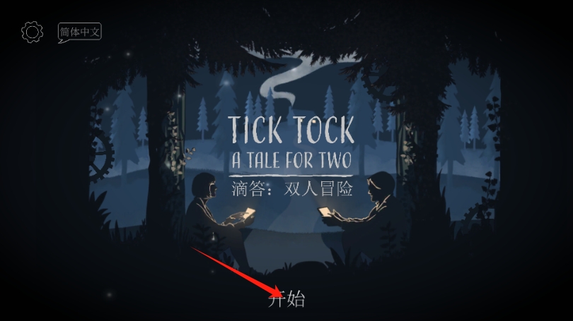 1、点击开始按钮,进入滴答双人游戏,这是开启双人合作冒险的关键操作,需与朋友共同参与。