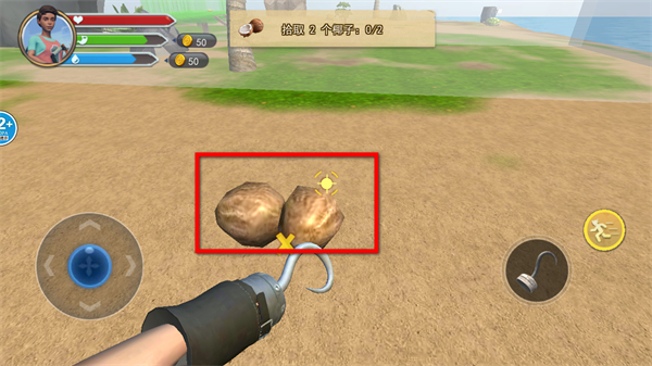 3、在任务区域,查看上方任务提示,明确需要完成的收集目标,如拾取椰子。
