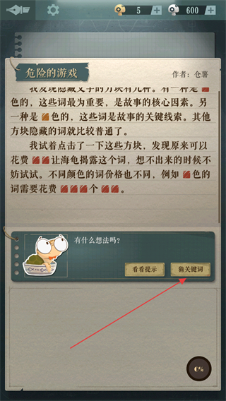 4、点击猜关键词,继续提交新关键词,推进后续的文字解谜。