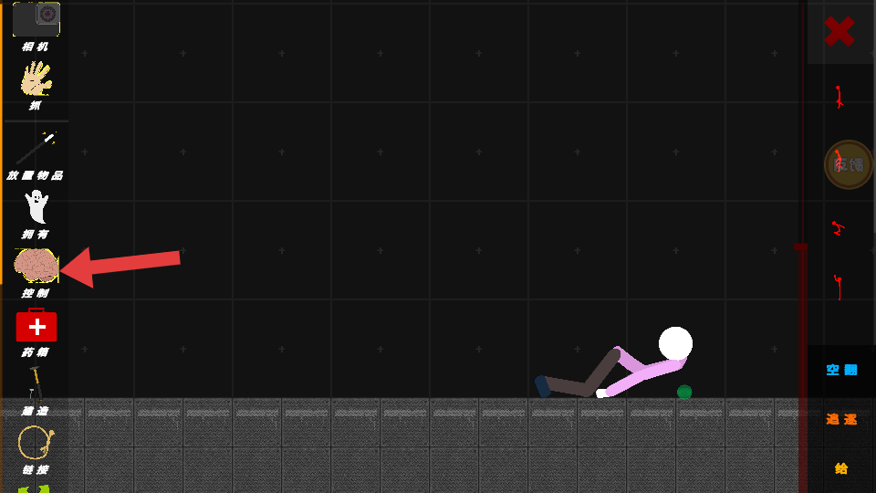1、在游戏界面中,点击箭头指向的控制选项,可对场景内的角色或物体进行操控,开启互动玩法,为后续操作奠定基础。