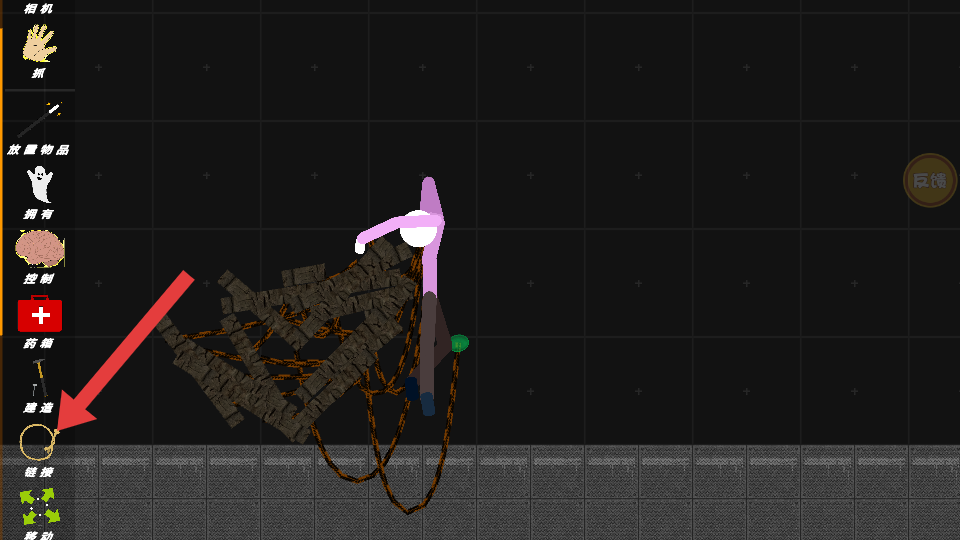 3、选择箭头指向的连接功能,能将不同的物体如石块、绳索等进行连接,打造更复杂的装置或结构,拓展游戏创作的可能性。