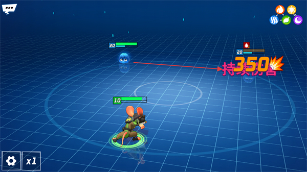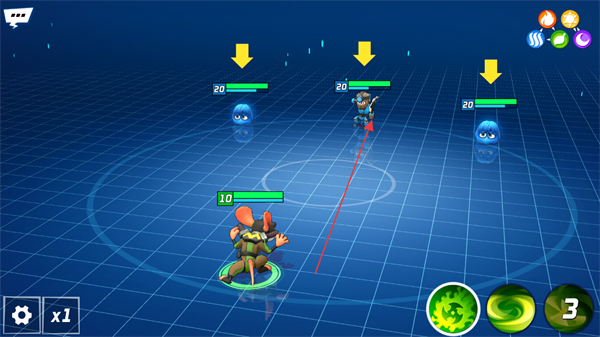 2、操控角色移动,瞄准上方带20数值的目标,准备释放技能进行攻击。