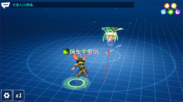 1、已进入1频道,操控角色靠近目标,释放风车手剑技能攻击,推进战斗。