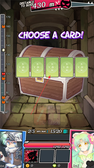 3、遇到宝箱后选择卡牌,开启宝箱获取奖励,提升资源或属性。