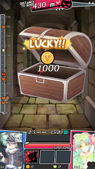 4、开启宝箱获得金币奖励,继续推进关卡,向击败Boss的目标前进。