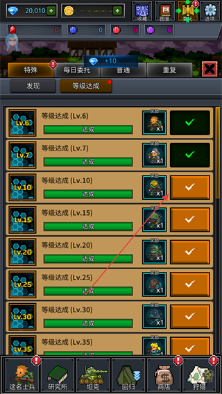 2、完成等级达成等成就任务,可获得奖励,如士兵角色等,点击成就界面的奖励图标领取。