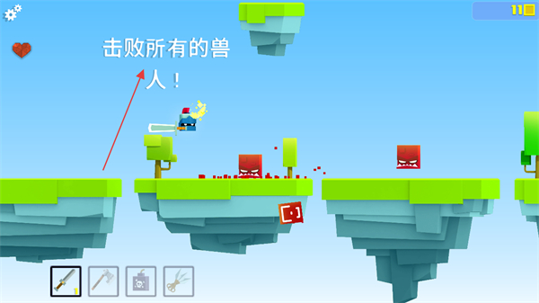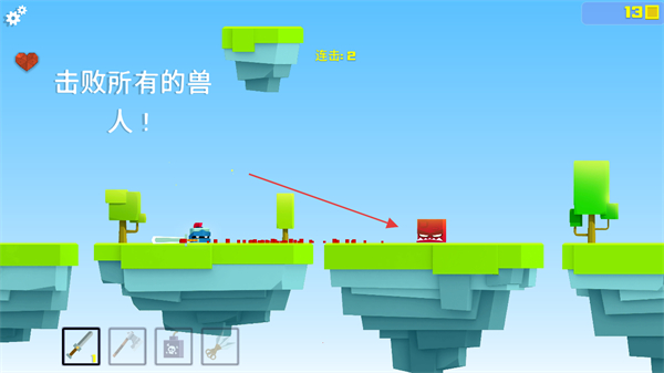 1、关卡目标是击败所有兽人,操控角色移动,利用武器攻击兽人。