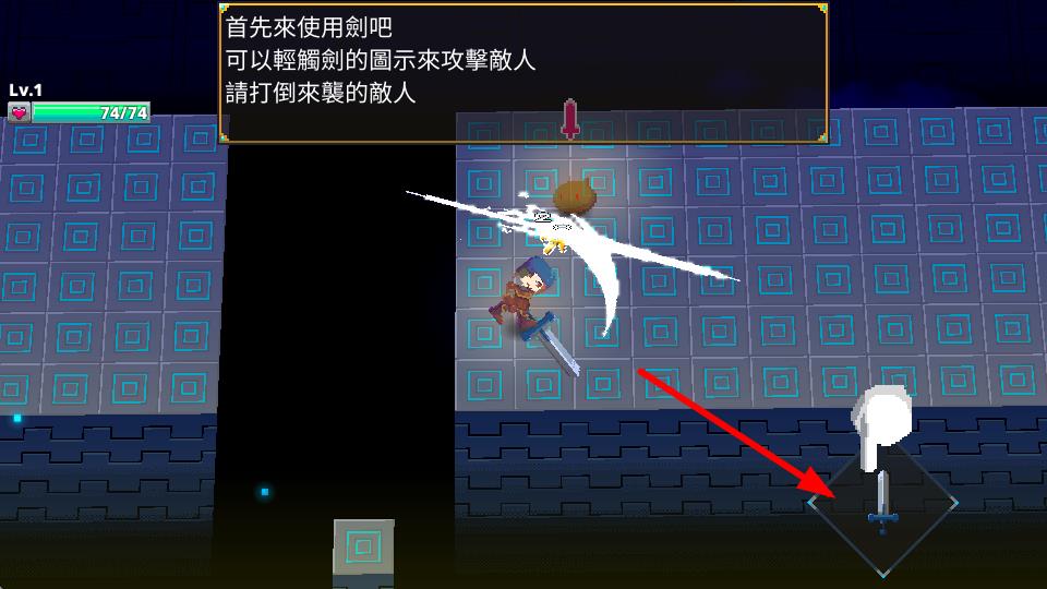 4、战斗时,轻触剑的图示可攻击敌人,按照提示使用剑攻击来袭的敌人,可顺利打倒敌人并推进游戏的进程。