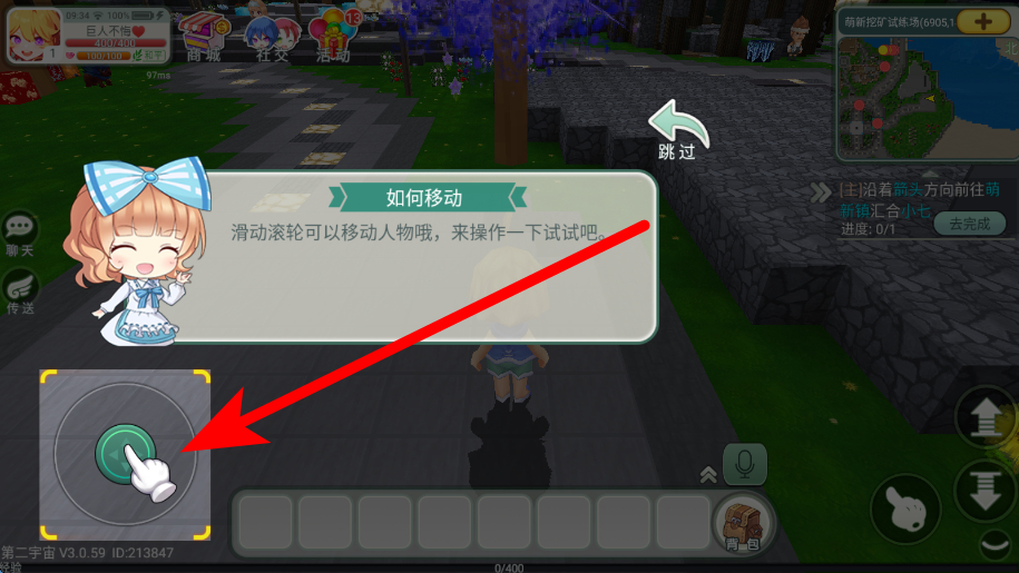 2、进入游戏后,会有操作指引提示,比如滑动滚轮可移动人物,跟随这些提示,熟悉角色的移动等基本操作,为冒险做好准备。