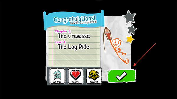 4、每个关卡会根据角色最后的生命值和获取到的资源数量来进行评分,点击绿色勾勾返回主页。