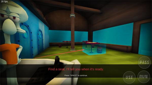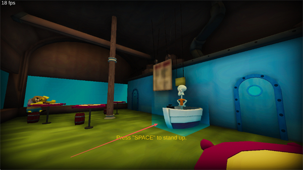 2、完成互动后,按SPACE键起身,继续探索蟹堡王的不同区域。