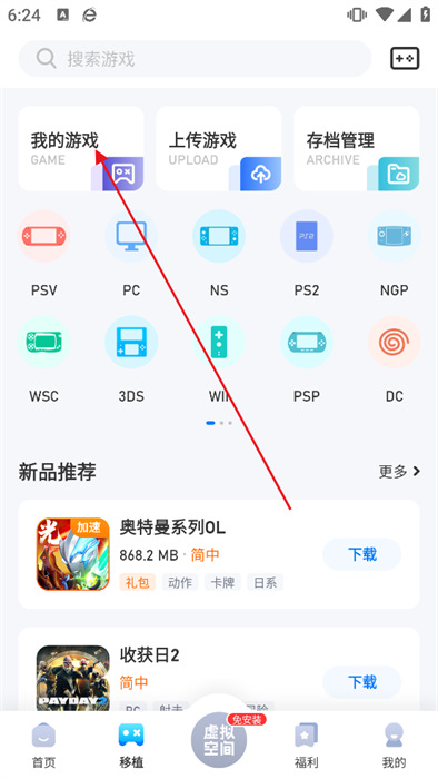 2、在跳转页面之后,点击最上方【我的游戏】如下图所示;