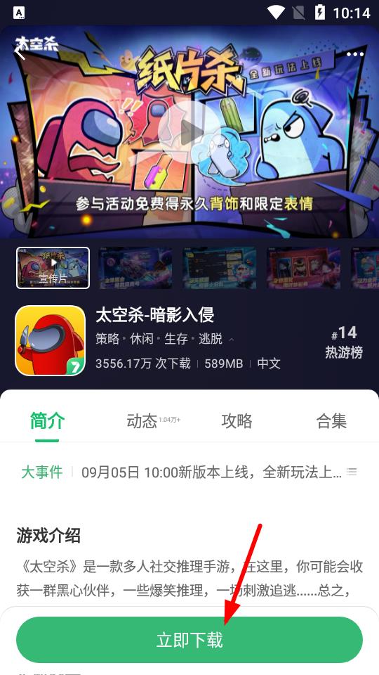 2、点击游戏进入详情页,了解游戏介绍、动态、攻略等信息后,点击立即下载按钮,等待游戏下载安装完成。