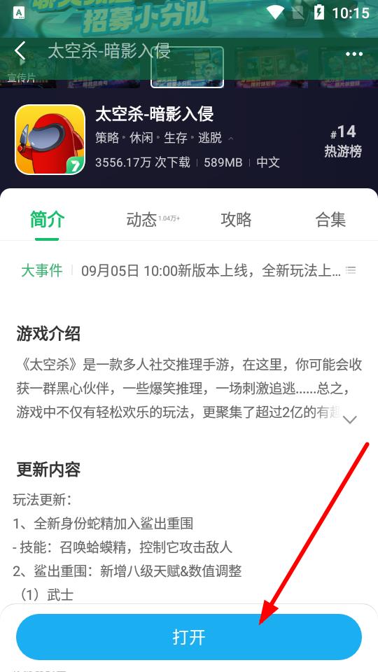 3、游戏安装好后,在游戏详情页点击打开按钮,就能启动游戏,开始尽情体验游戏乐趣。