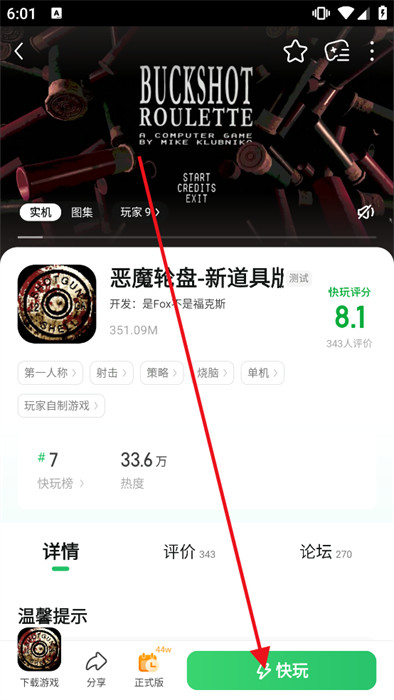 4、最后,在详情页最下方点击【快玩】,这样无需下载即可体验游戏。
