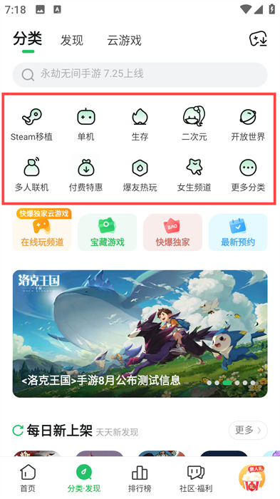 1、抢鲜体验频道改版,找最新上架游戏更方便