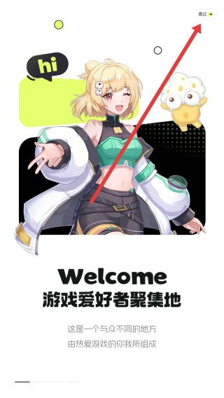 2、进入欢迎界面,若无需浏览引导,点击右上角跳过按钮,直接跳过欢迎动画,快速进入应用主功能区域。