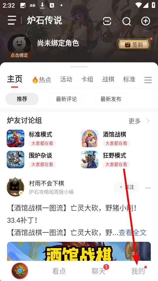 1、打开炉石传说相关应用,点击底部我的选项,进入个人页面。