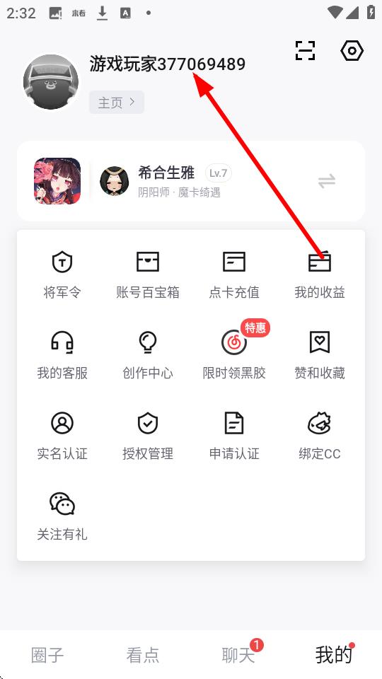 2、在个人页面,点击显示的用户名区域,进入个人主页。
