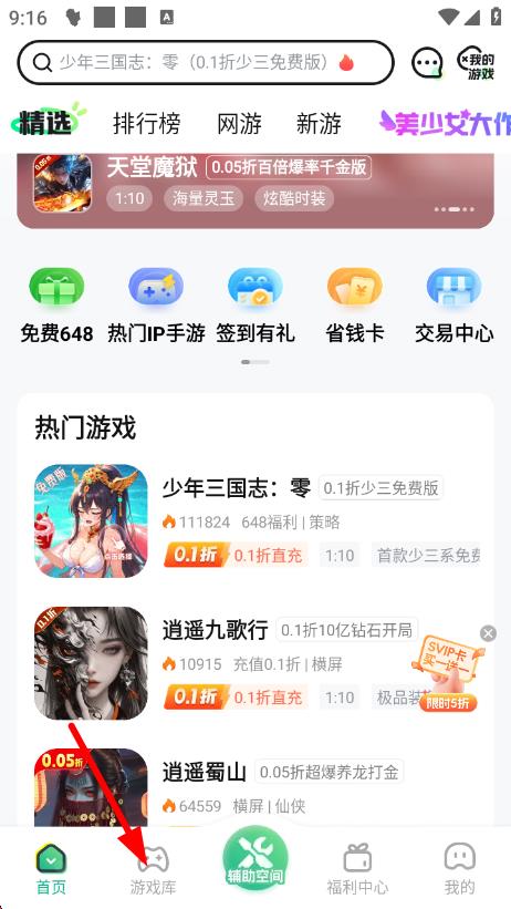 1、打开3733游戏盒,点击底部导航栏中的游戏库,进入游戏查找界面。
